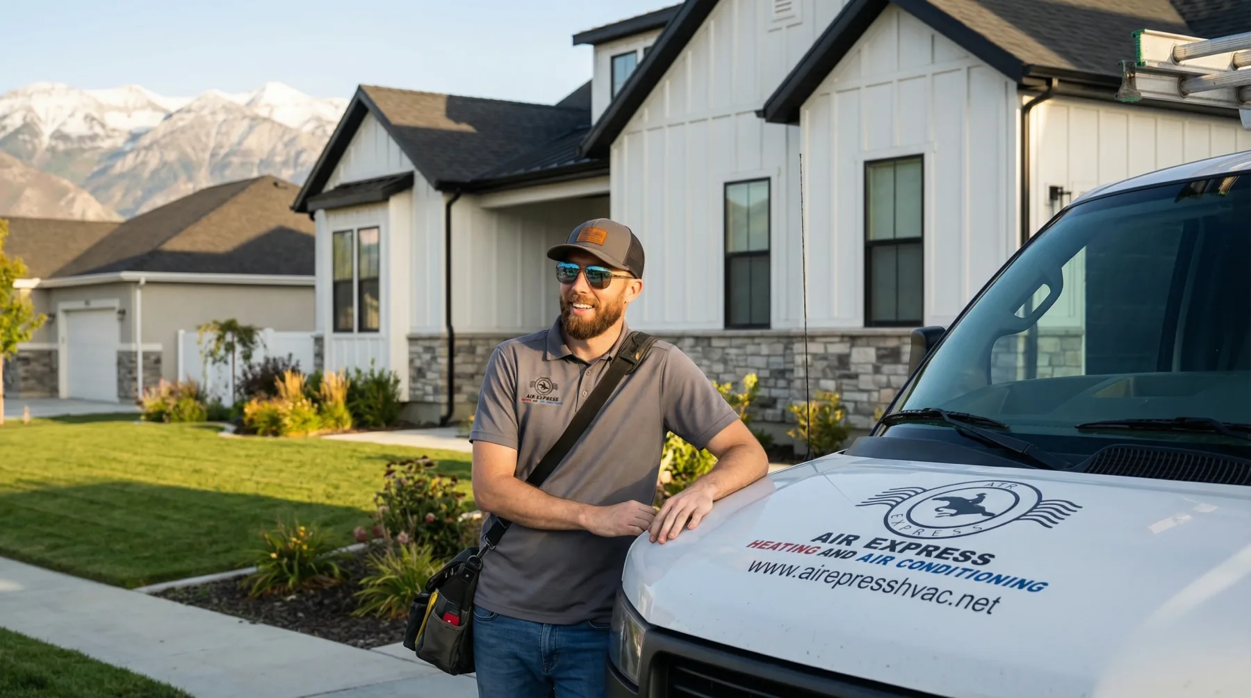 Air Express starts in a Lehi garage with two techs, a used Chevy van, and a loan from a family friend. First job: a cracked heat exchanger on a 30-year-old furnace in American Fork.